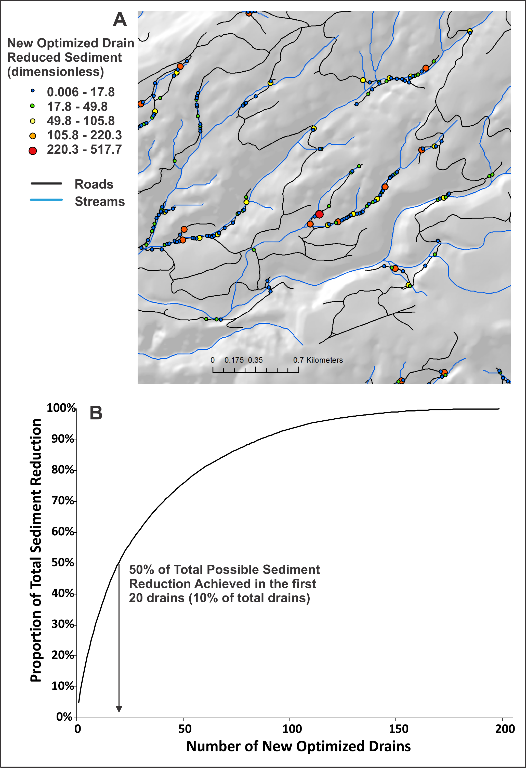 The analysis revealed how strategic placement of new road drainage structures can optimize reductions in hydrologic connectivity and sediment delivery.
